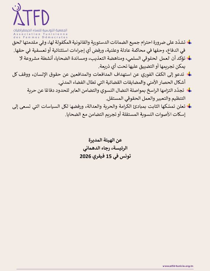 En conséquence, l’Association Tunisienne des Femmes Démocrates :