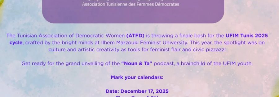 L’Association Tunisienne des Femmes Démocrates (ATFD) vous invite à la cérémonie de clôture de l’Université Féministe Ilhem Marzouki (UFIM) – Cycle Tunis 2025