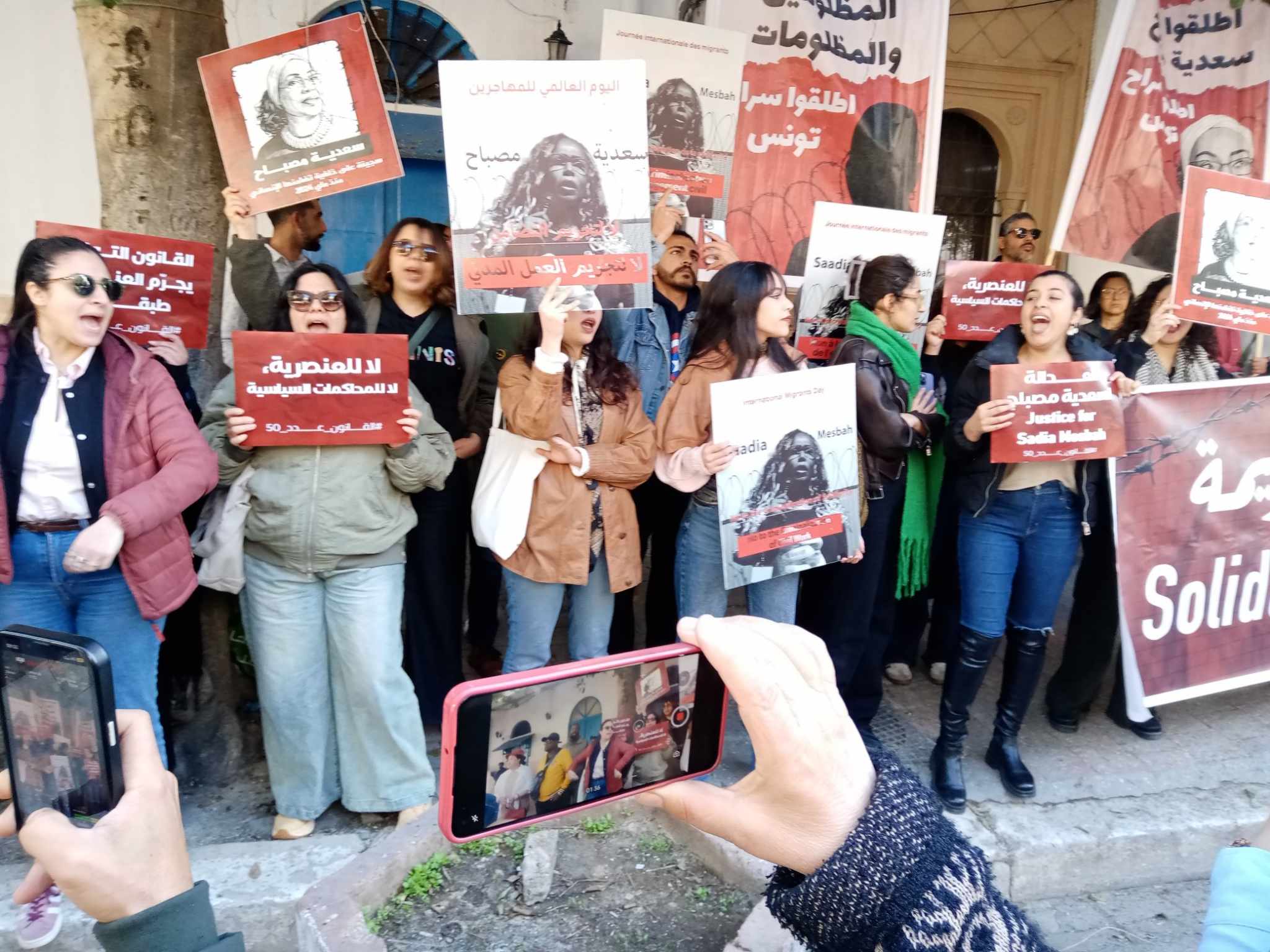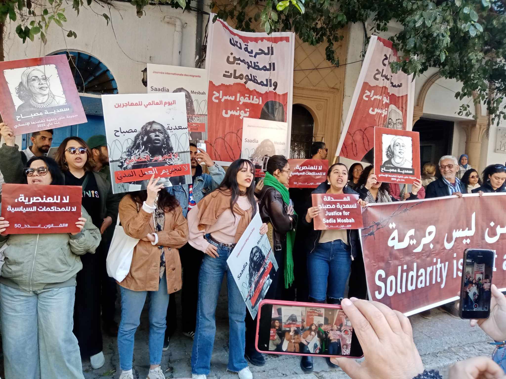 Retour en images sur le rassemblement de solidarité avec la prisonnière de la criminalisation du travail civil et humanitaire, Saadia Mesbah, organisé ce jour 26 février 2026 devant le Tribunal de Première Instance de Tunis, pour exiger sa libération et la réparation de son préjudice.