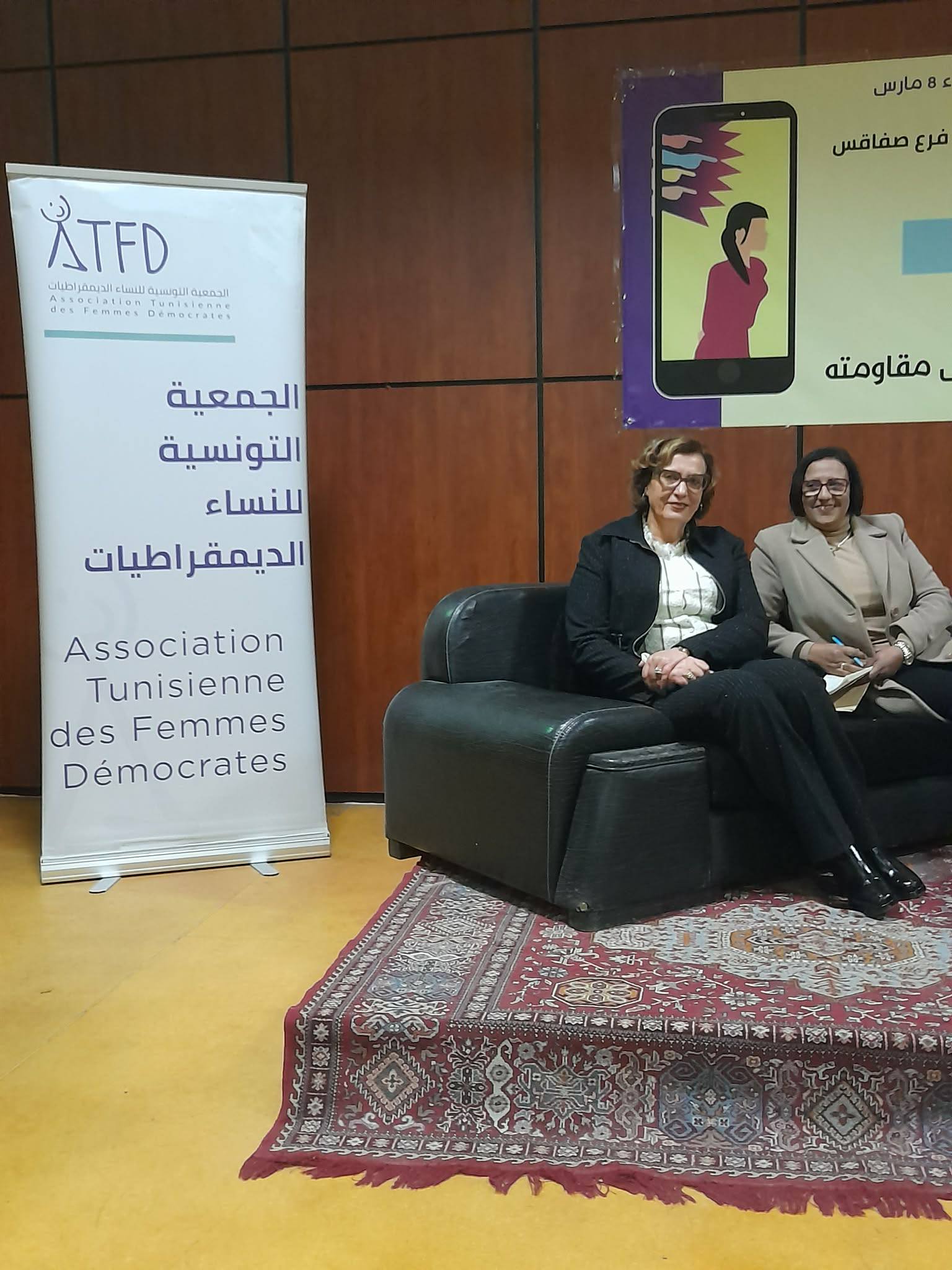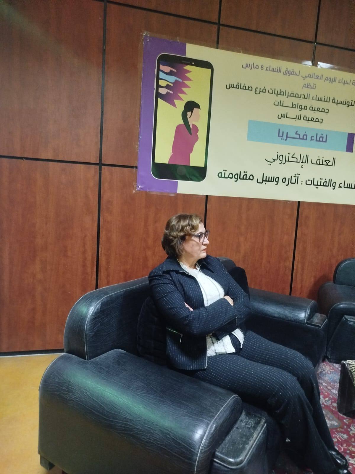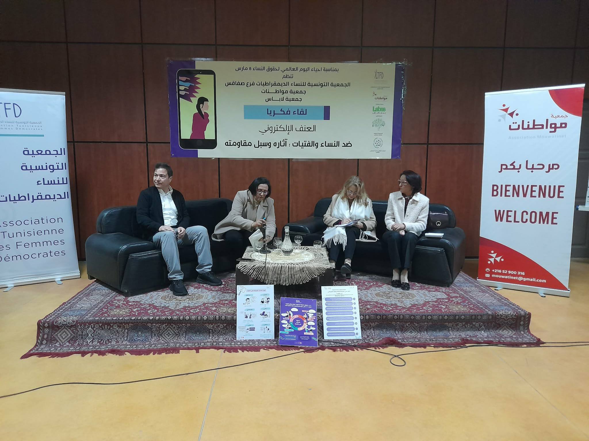 Retour en images sur la rencontre-débat organisée par l’Association Tunisienne des Femmes Démocrates – section de Sfax, en partenariat avec l’Association Mouwatinat et l’Association Labes, autour du thème : « La violence électronique : ses impacts et les moyens d’y faire face ».