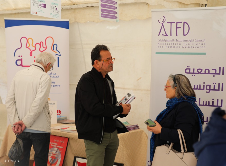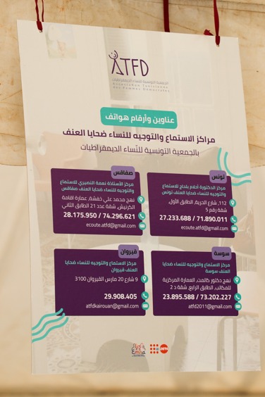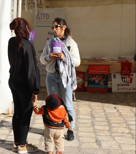 Retour en images sur l’activité organisée par la section de l’Association Tunisienne des Femmes Démocrates à Sfax – Centre Naâma Nasiri d’écoute et d’orientation pour les femmes victimes de violence, consistant en une campagne de sensibilisation pour faire connaître le centre, à travers une tente solidaire comprenant une exposition photographique et des publications, ainsi que des ateliers interactifs avec le public.